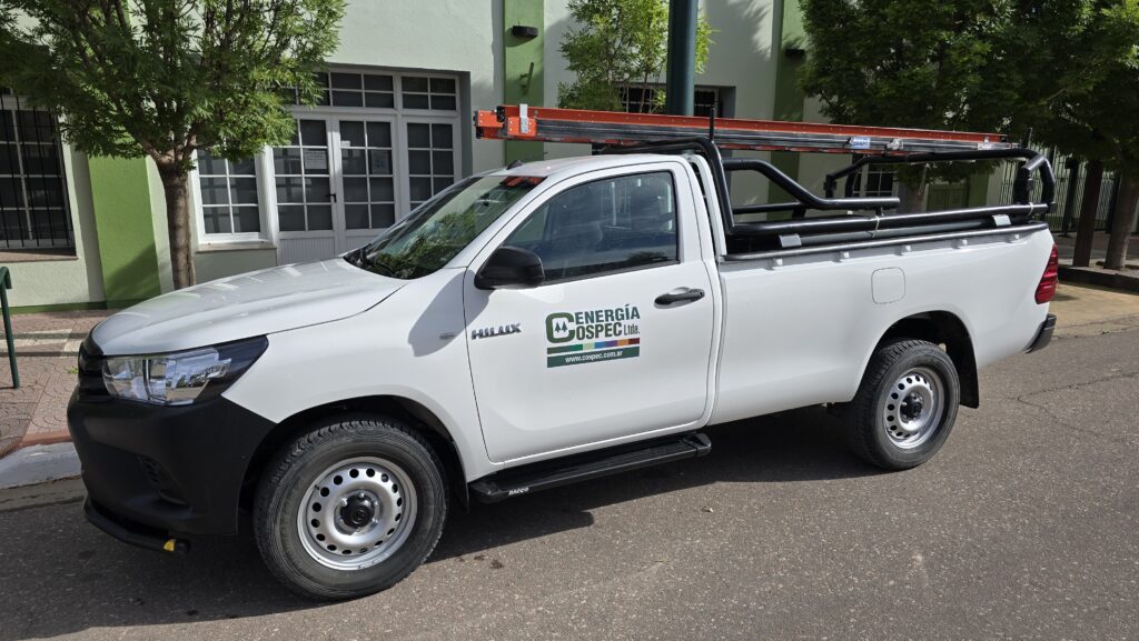 La Cospec Ltda adquirió una camioneta Toyota Hilux 0 kilómetro que será destinada exclusivamente al servicio de atención de emergencias en energía eléctrica. La nueva unidad se suma a las inversiones realizadas para renovar la flota de vehículos, con el objetivo de brindar mayor rapidez y eficiencia en la resolución de los reclamos que se registran diariamente, y paralelamente abaratar los costos de mantenimiento.